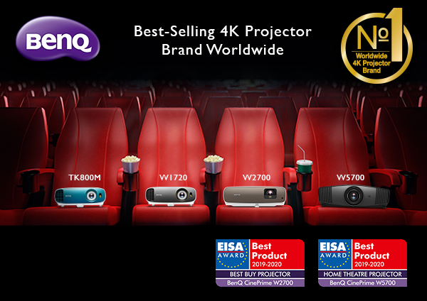 Carrying on the leading momentum from 2018, BenQ not only achieved worldwide No.1 position with 32.1% market share, but hit a record high 29.77% market share of 4K projector in the Europe region for Q2 2019*. Thanks to BenQ’s exclusive CinematicColor™ technology that offers long-lasting accurate color for movie lovers and outstanding product design, the latest 4K home cinema projectors W2700 and W5700 won internationally renowned EISA (Expert Imaging and Sound Association) awards in the 2019/2020 Best Buy Projector (W2700) and Home Theatre Projector (W5700) categories. The awards will be presented at an official ceremony the first day of IFA, Berlin, on 6th September 2019. These achievements cemented BenQ as the top brand in 4K projector segment, and boosted customer preference as well as renowned media recognition for the brand.