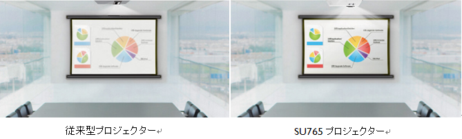 SU765は、WUXGA (1920x1200)の高解像度、高輝度5500ルーメンの明るさを実現しています。これにより、プレゼンターと参加者は明るい中規模の会議室内でも快適にプレゼンテーションを行うことができます。また、微細なディテールまで再現され、文字もくっきりと読みやすくなり、さらに高度なディスプレイ性能を提供することで、 話し合いや共同作業が捗り、ノートも取りやすくなるので、会議の生産性が向上します。