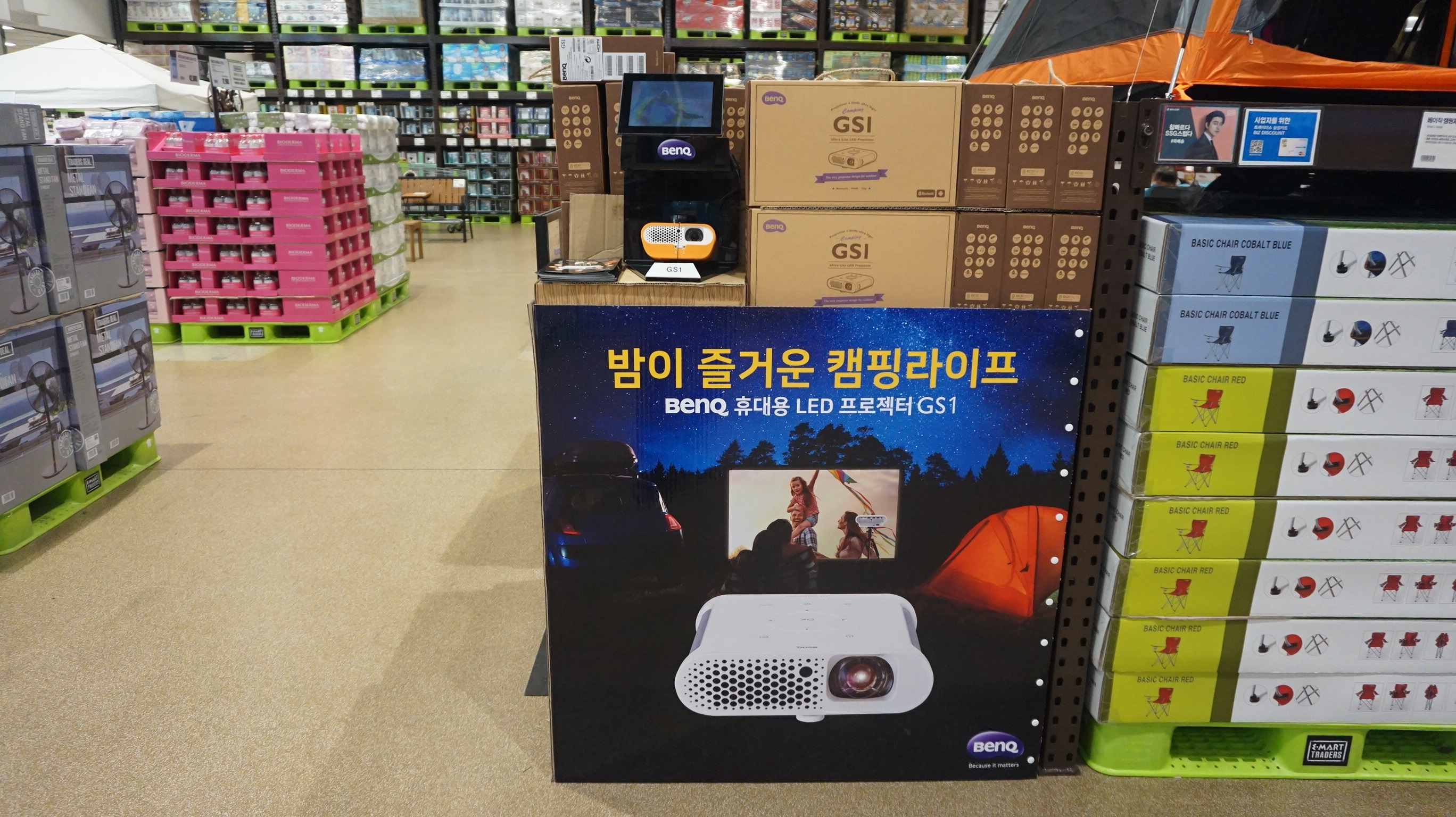 글로벌 디스플레이 브랜드 벤큐(지사장 소윤석, www.BenQ.co.kr)는 자사의 휴대용 빔프로젝터 GS1 제품을 이마트 트레이더스에 입점시켰다고 밝혔다. 이마트 트레이더스는 대량 매입과 낮은 운영 비용을 통해 검증된 브랜드의 제품을 합리적인 가격에 구매할 수 있는 창고형 할인점이다.