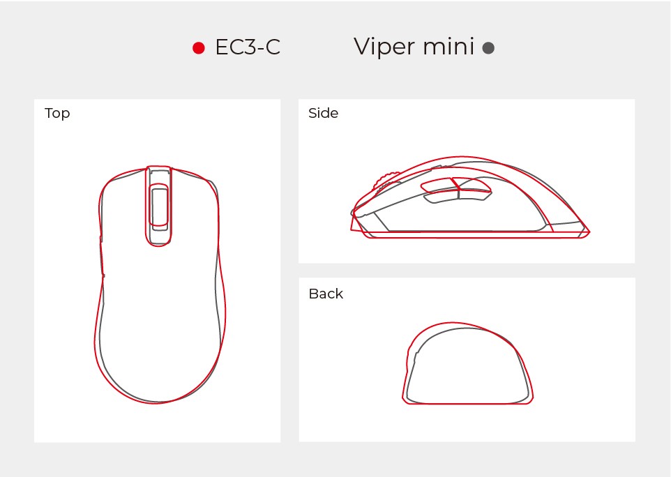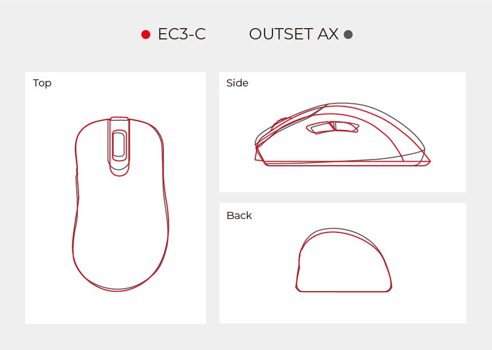لقد تلقينا الكثير من الأسئلة عن اختلاف شعور القبضة بين EC3 و EC2 ونماذج العلامات التجارية الأخرى. نحن نتفهم أن اختلاف شعور القبضة يعتمد على ما يفضله كل فرد بما في ذلك حجم اليد وأسلوب القبضة والطريقة التي تلعب بها في اللعبة، لذلك نعتقد أنك أفضل شخص يحكم على اختلاف شعور القبضة في EC3 مقارنة بالماوس الحالي.