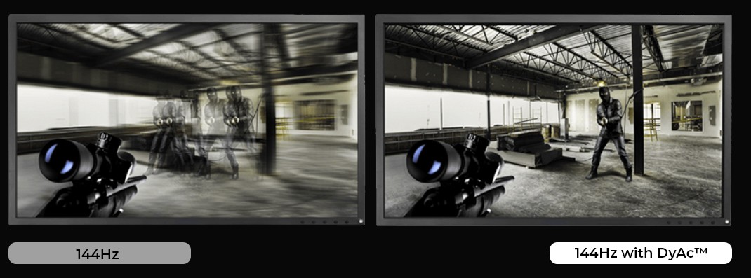DyAc (Dynamic Accuracy) is a proprietary BenQ ZOWIE technology which is used on our select gaming monitors. The purpose of DyAc is to provide improved performance and remarkable clarity during gameplay to give players an advantage on the battlefield.