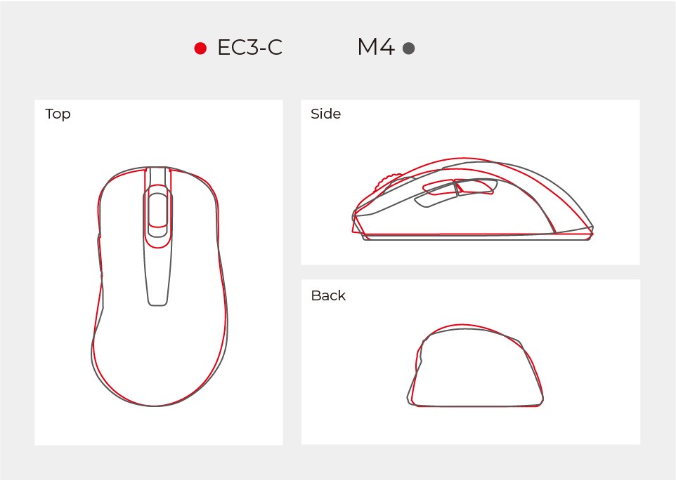 EC3, EC2 혹은 브랜드 모델과의 그립감 차이점에 대한 질문을 많이 받았습니다. 손 크기, 그립 스타일, 게임 내 플레이 방식 등 각자의 취향에 따라 그립감 차이가 다르기 때문에