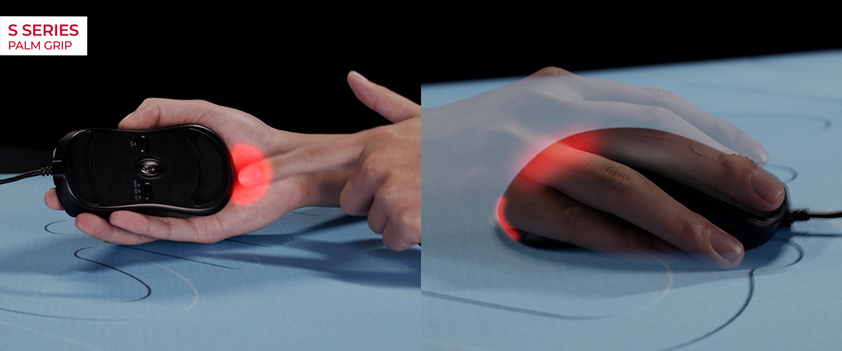 เมื่อเทียบกับรุ่น S ตำแหน่งโคกจะเปลี่ยนเพื่อลดการสัมผัสบริเวณฝ่ามือส่วนล่าง เมื่อจับกรงเล็บ เมาส์ S-series จะรู้สึกสั้นลง