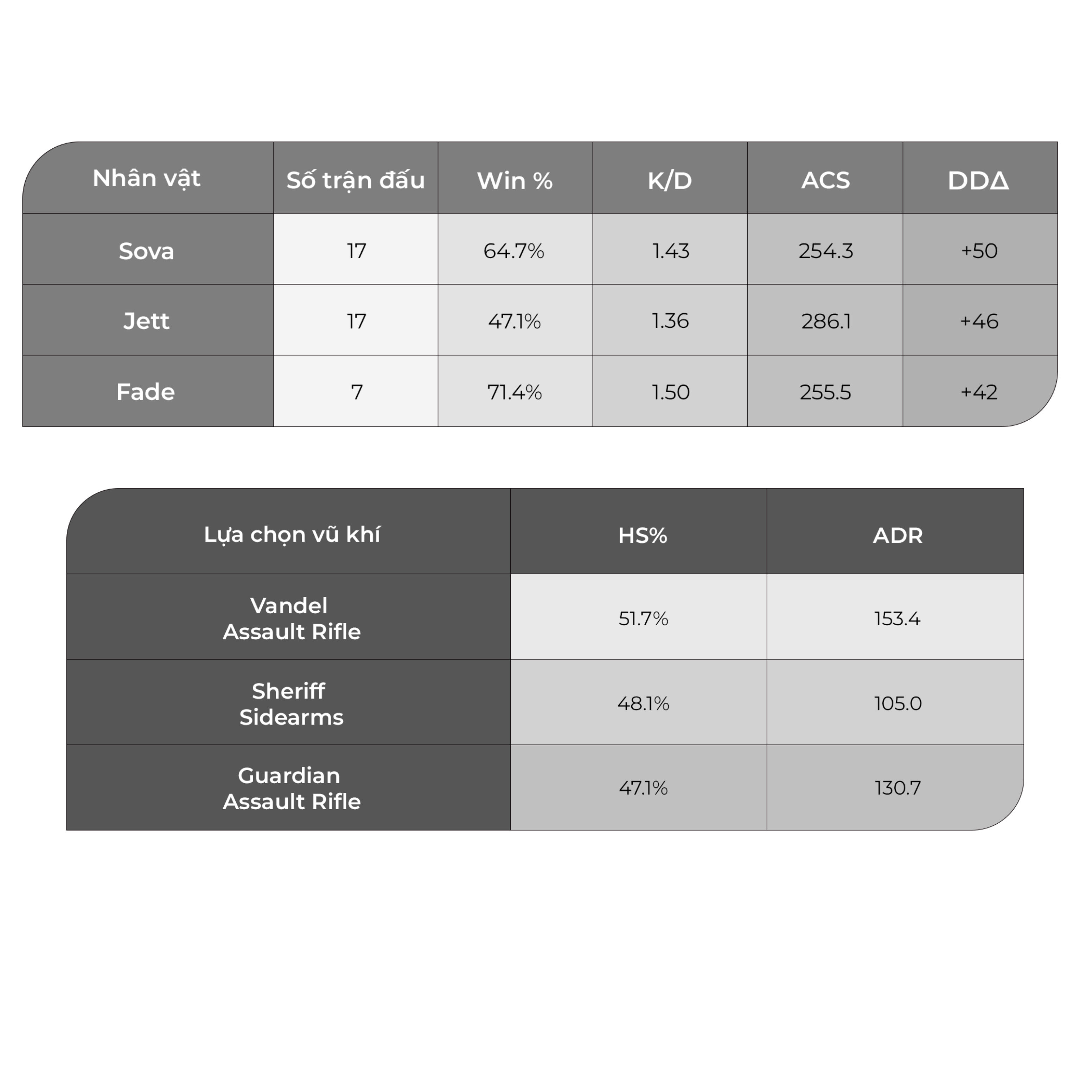 Độ chính xác với vũ khí: Tỷ lệ headshot 32,6%, chứng tỏ sự chính xác và ổn định của anh, với Vandal là vũ khí chính (tỷ lệ headshot 52%).