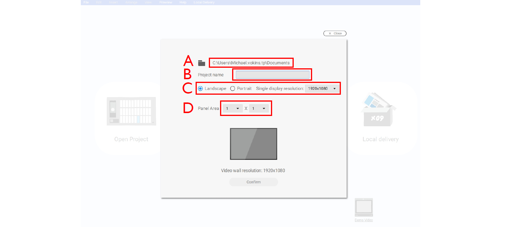 D. Panel Area - Adjust this setting for creating a Video Wall project.
