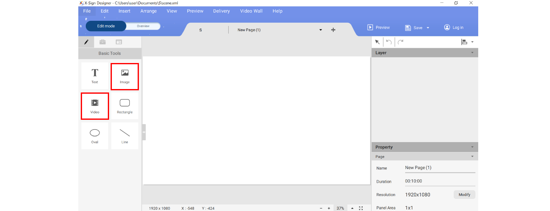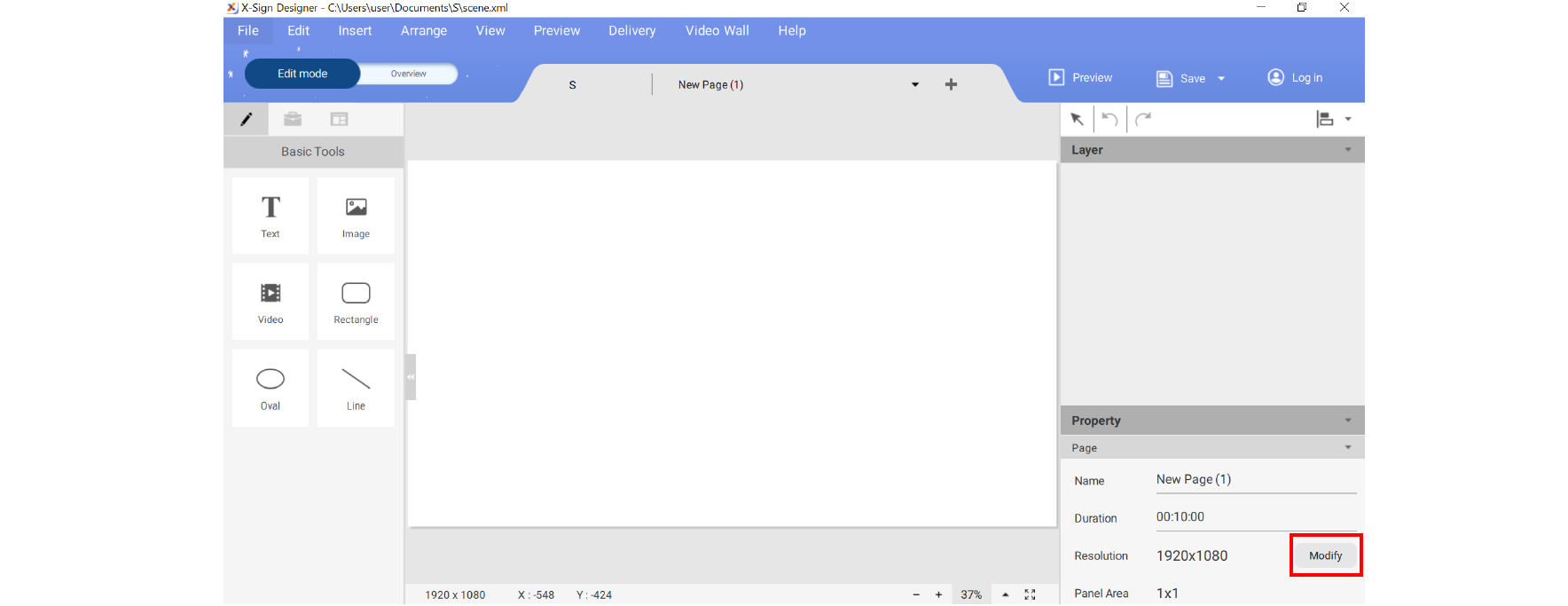 Creating a new project file in X-Sign Designer