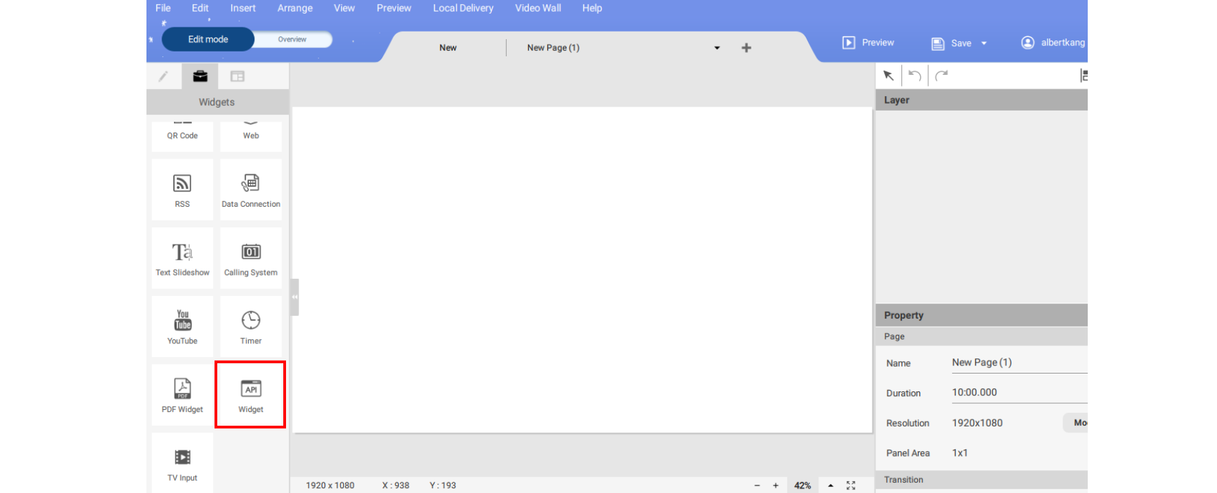 4. You may set the properties of the API widget in the editing area on the right panel.