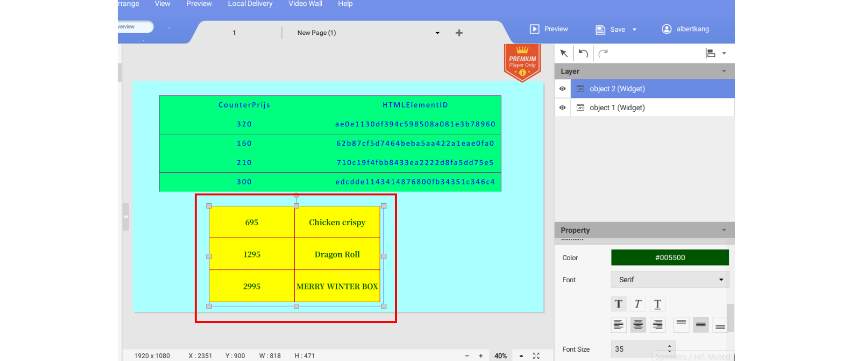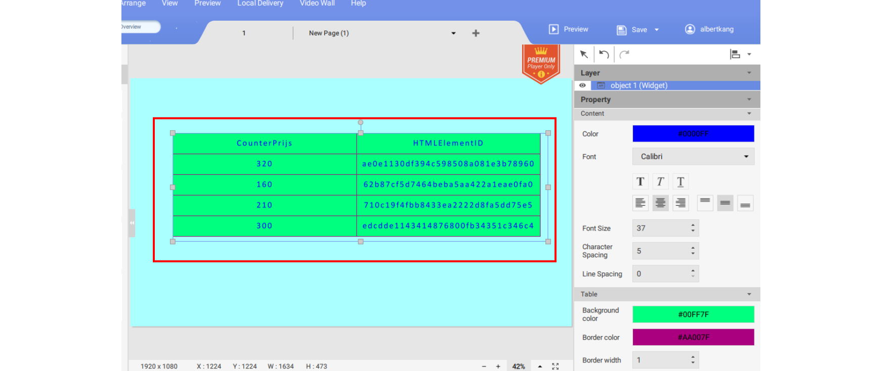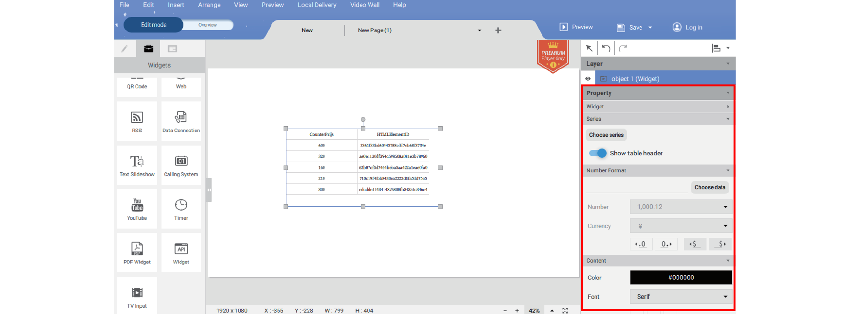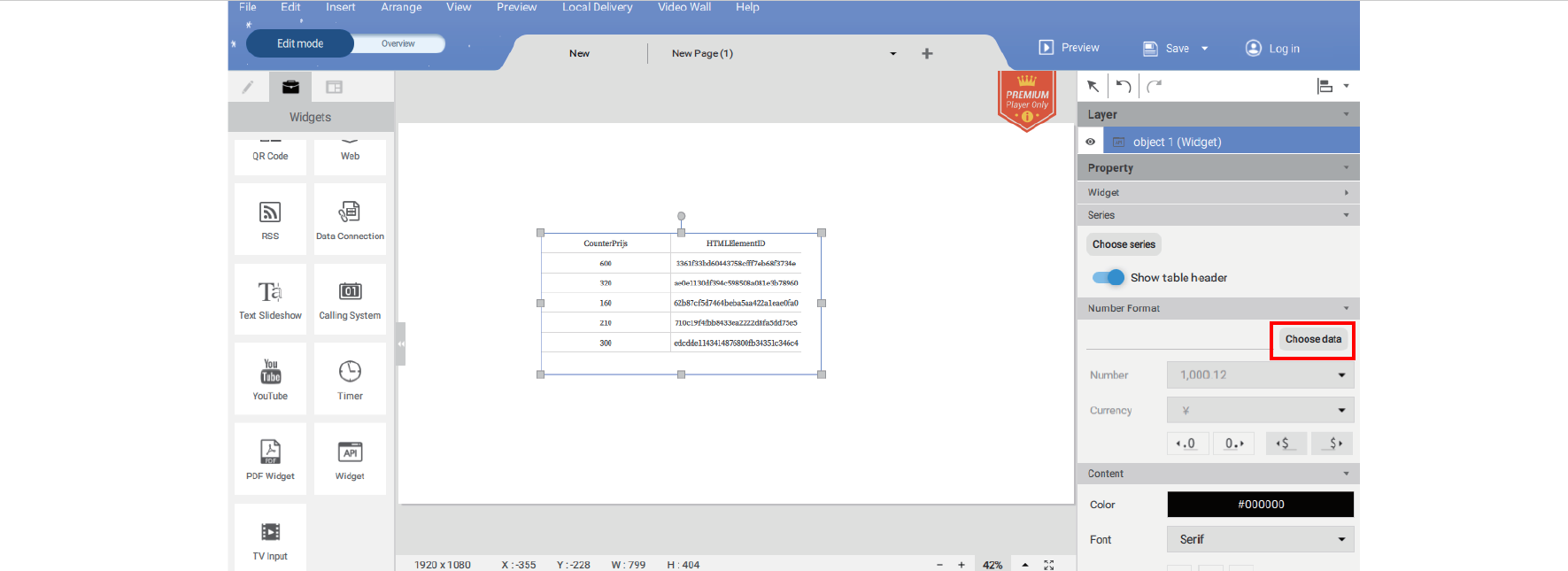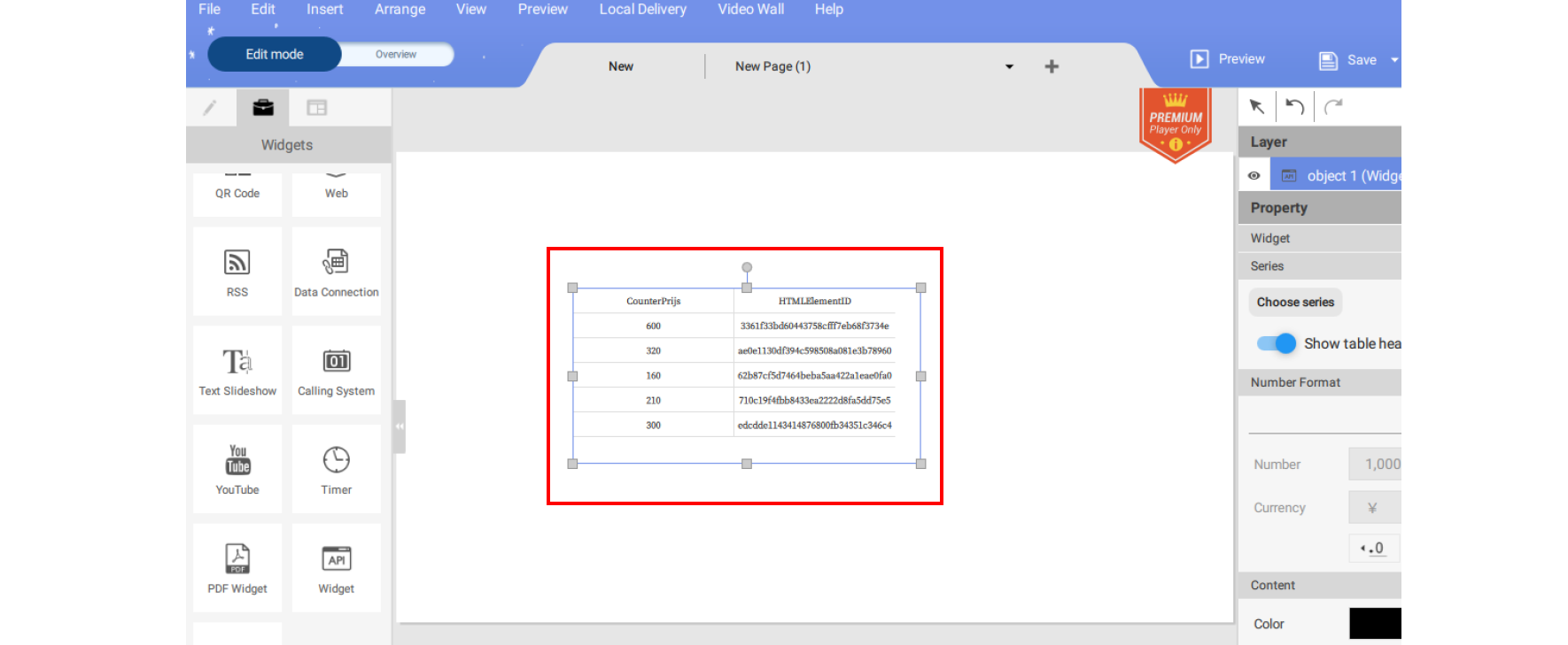 1. In X-Sign Designer, click on the icon to add an API widget, and you will be prompted to select the name of the API table(s) you have created in X-Sign Manager. See Creating an API table in X-Sign Manager for more imformation.