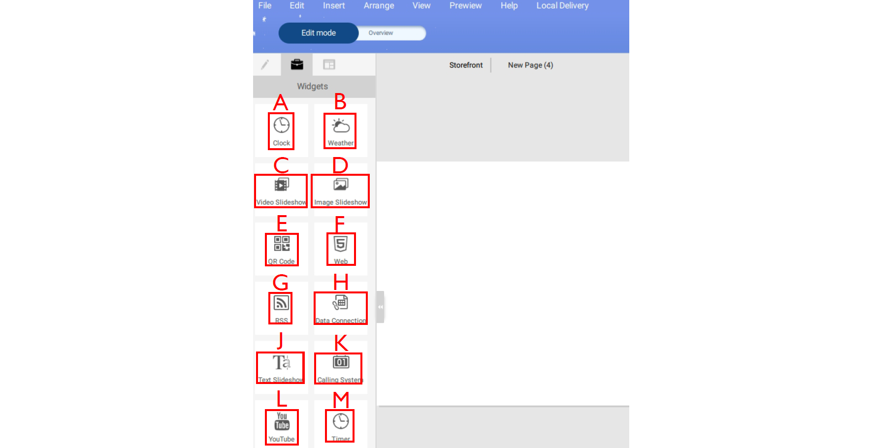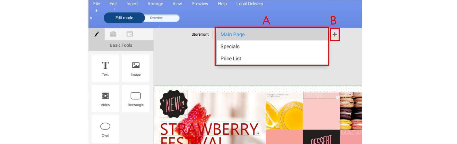 3. In Edit mode, you can add and customize different pages: