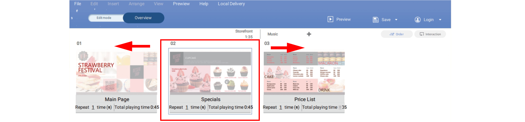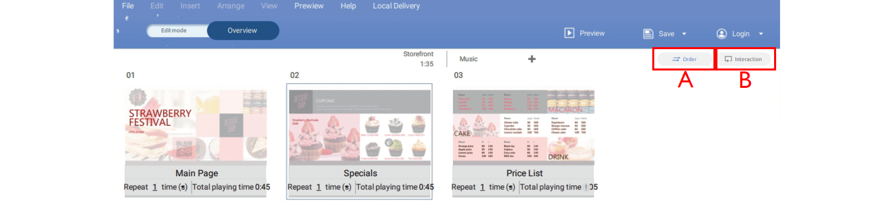 8. Click Order or Interaction to choose the play sequence for a project:
