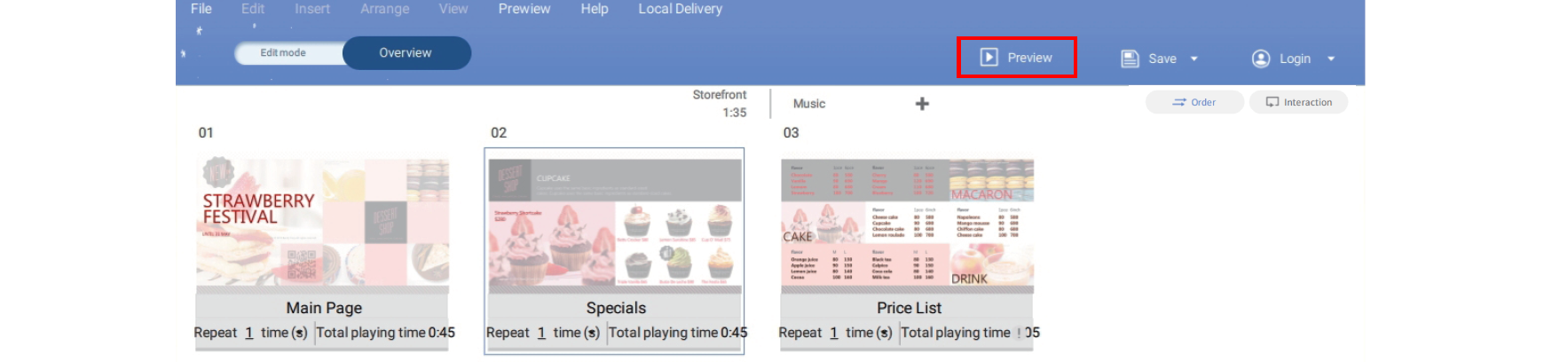 9. You can preview your project by clicking the Preview button. This will play the current project on X-Sign Player. Click ESC to return to X-Sign Designer.