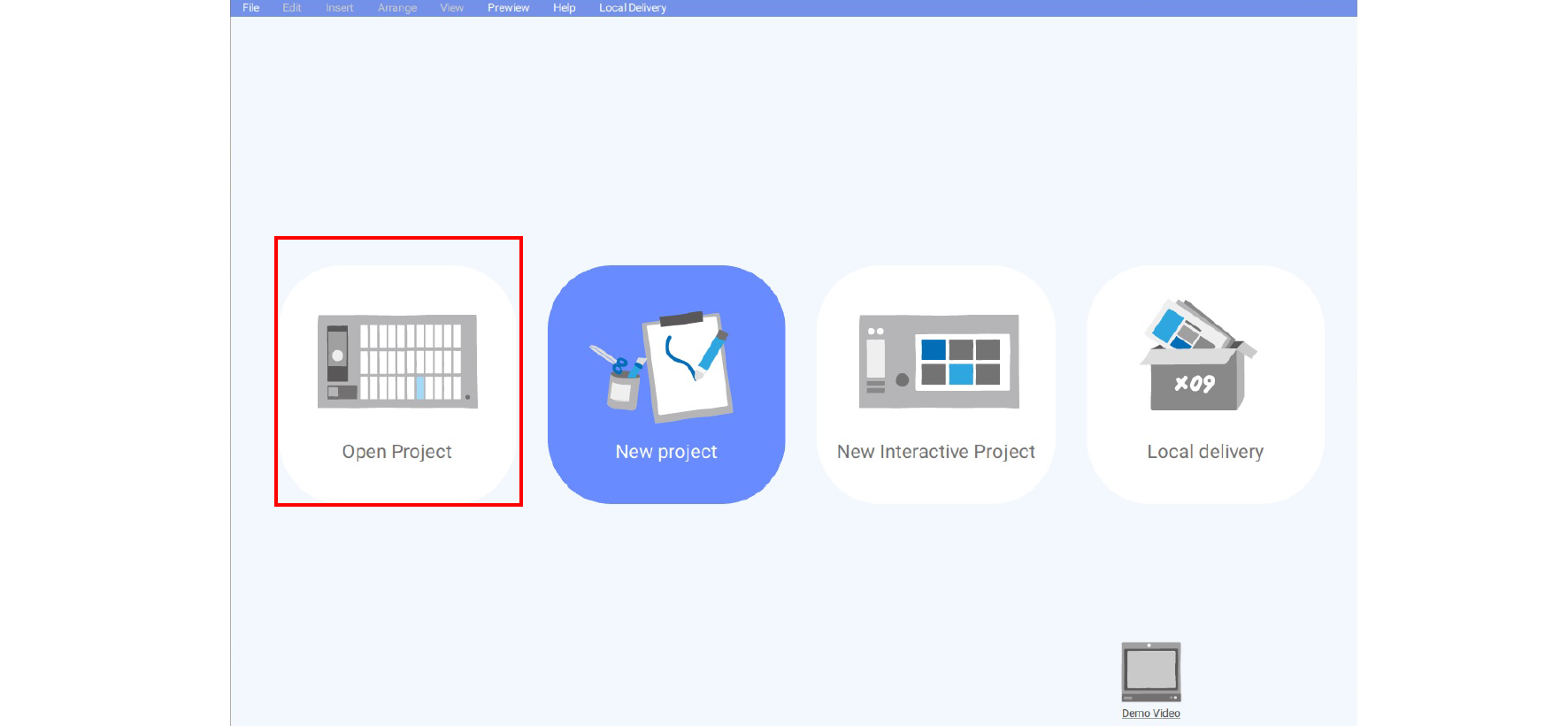 1. Launch the X-Sign Designer software and click Open Project (You can also select File > Open Project or Ctrl + O).