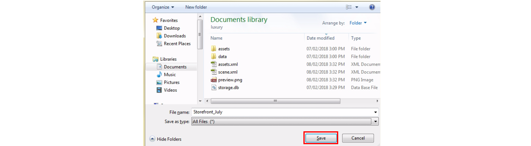 4. Rename the project and choose the location on your hard drive, then select Save.