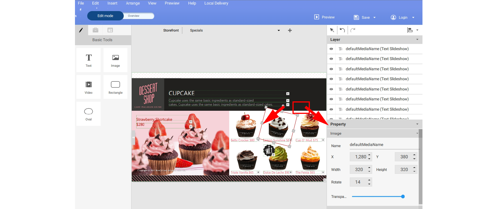 To rotate an image on X-Sign Designer: