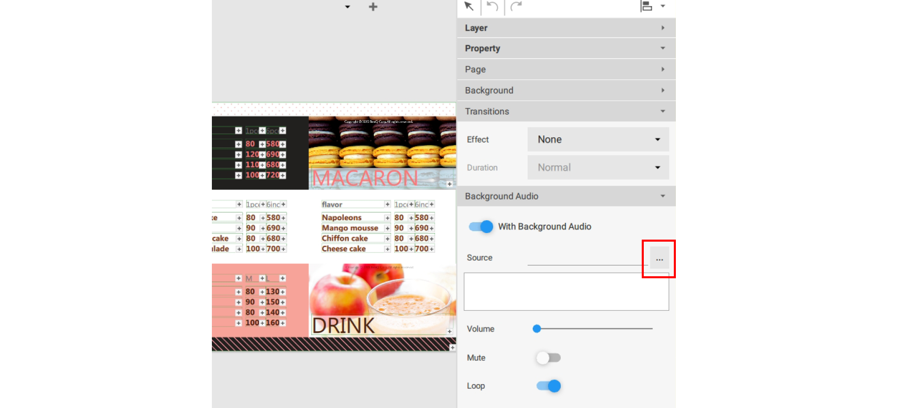 Note: Make sure no bounding boxes are selected in the canvas in order to access the Audio panel.