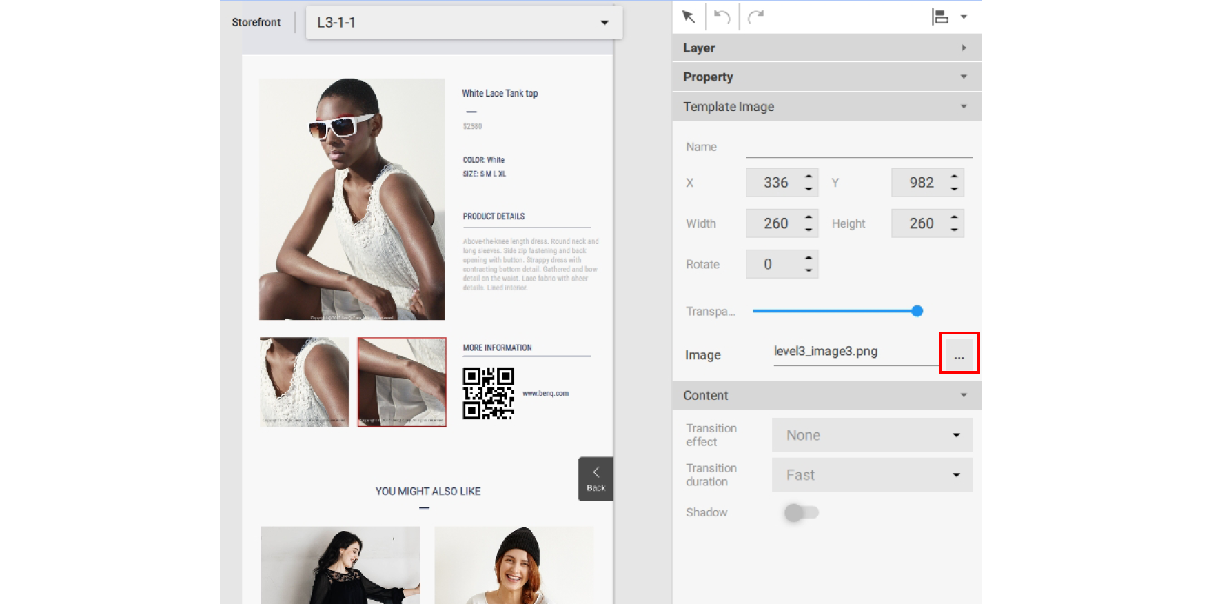 1. You can change each image displayed in a Content Page by selecting it in the canvas, then going to the Template Image panel on the right and click the button.