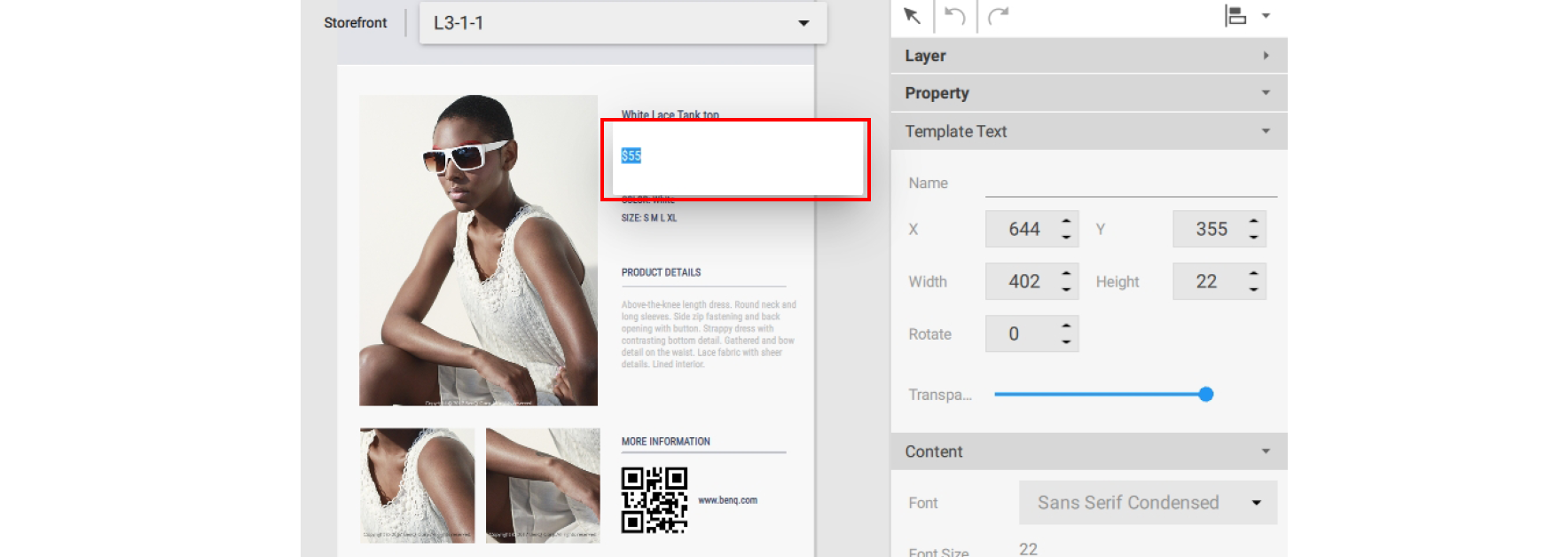 4. You can edit the URL for a QR code in a Content Page by selecting it in the canvas, then going to the Content panel on the right and clicking Edit Address. Enter the QR code link and click Confirm.