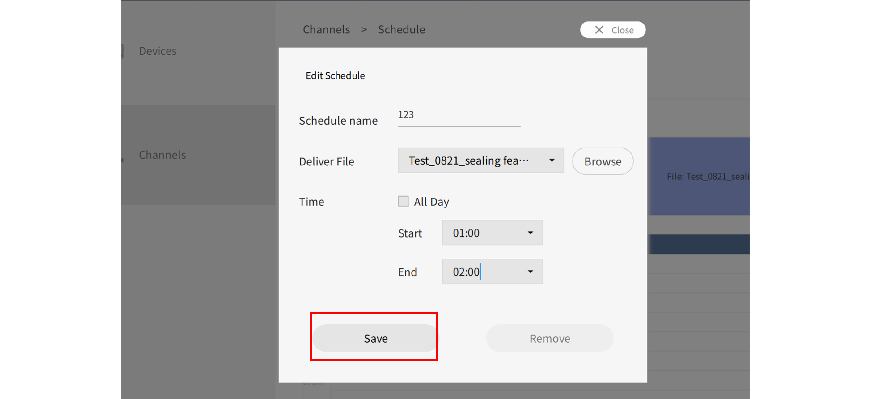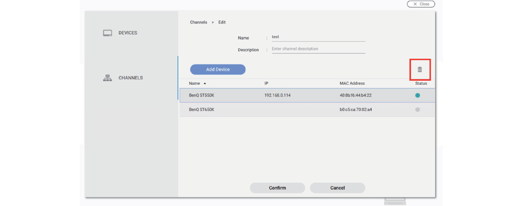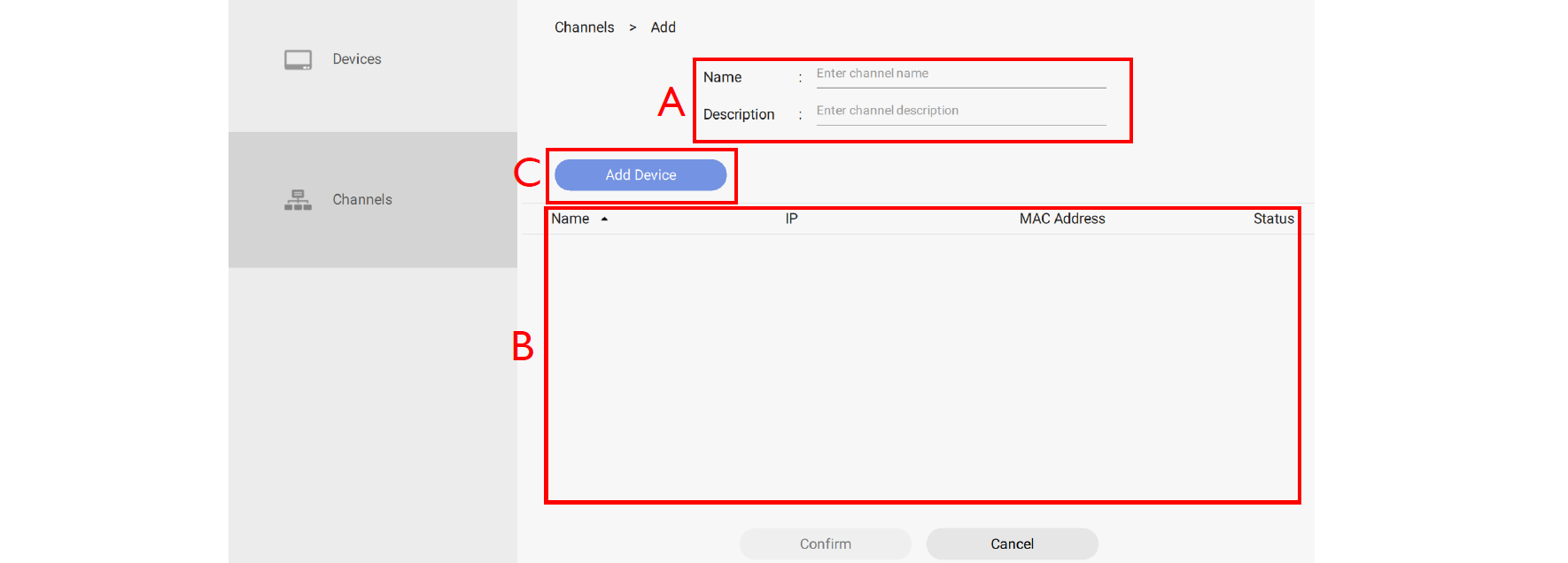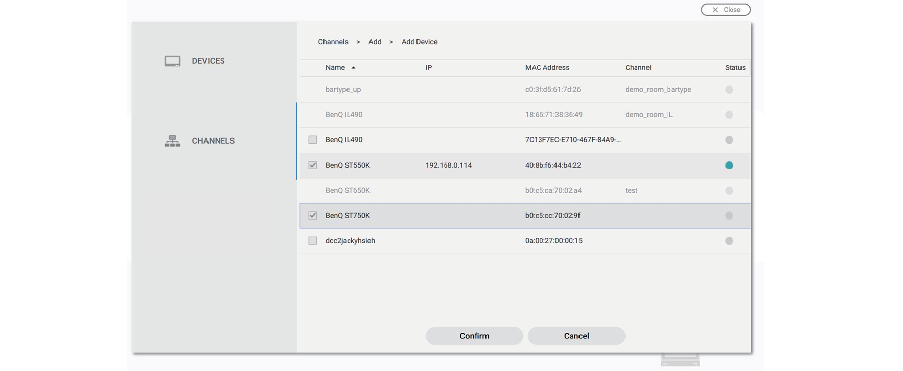 Note: A device which is already added to one channel can't be added to another channel. You have to remove it from its channel first.