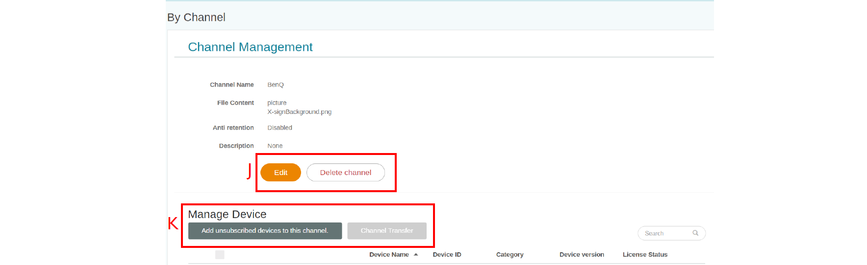 I. Select to add the existing device to the channel.