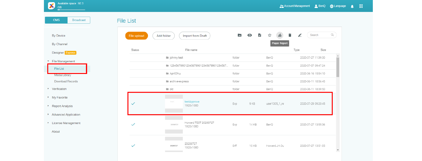 1. Go to File List, select a file, and click the Player report icon.
