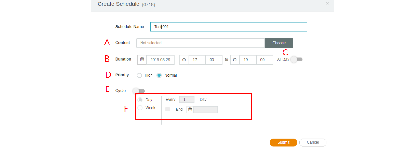 B. Set the schedule time you want to play the content.