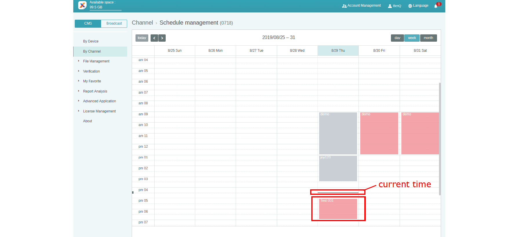 3. Click the icon and you will see the schedule management page of Channel. Click the time slice you want to set schedule.