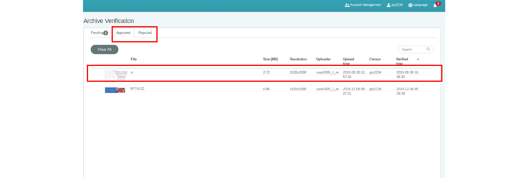4. The file now is under the approved (or rejected) section.