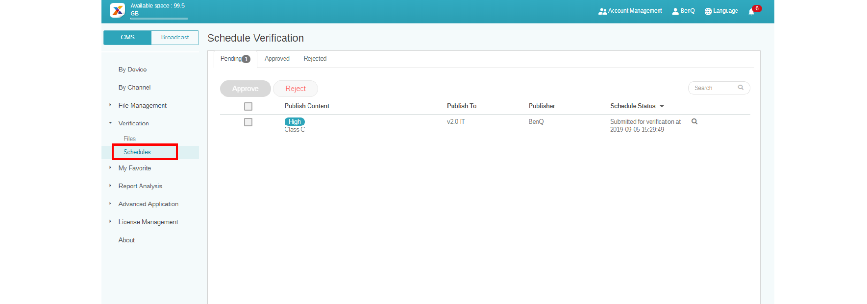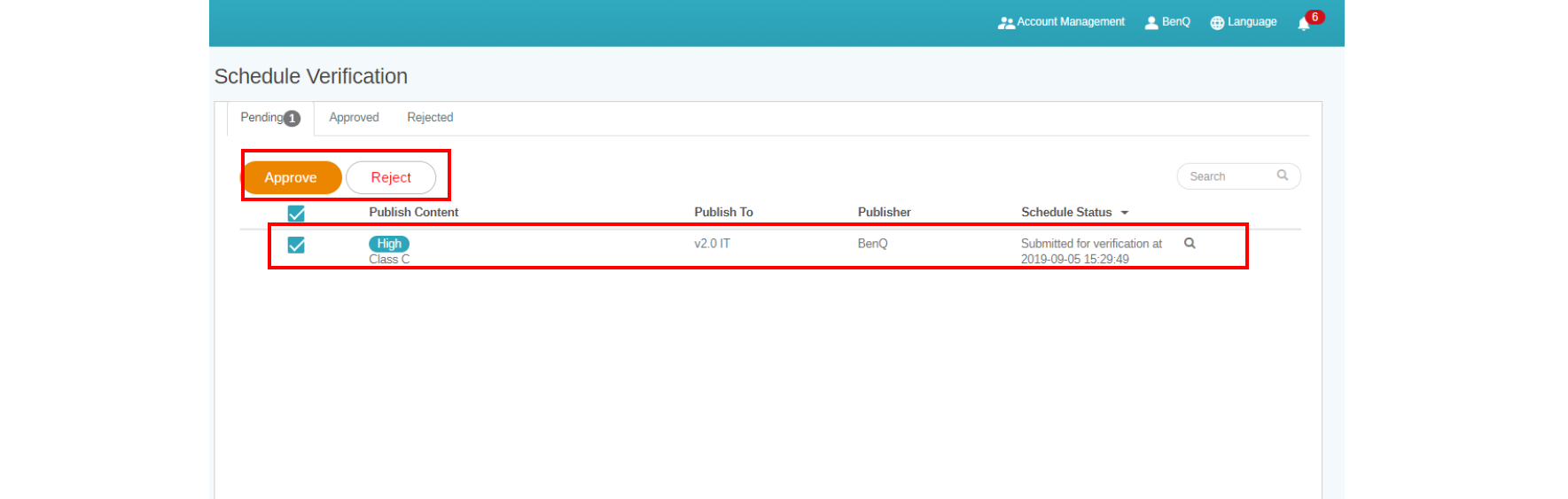 2. Select the schedule to be approved or rejected, then click Approve or Reject.