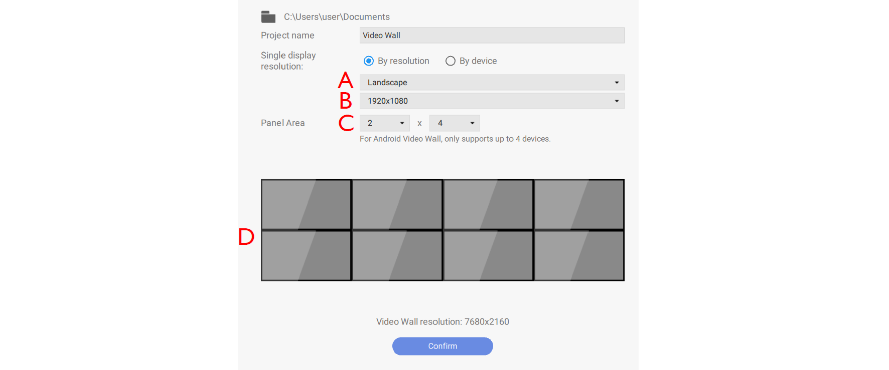 Note: Android Video Wall only supports up to 4 devices.