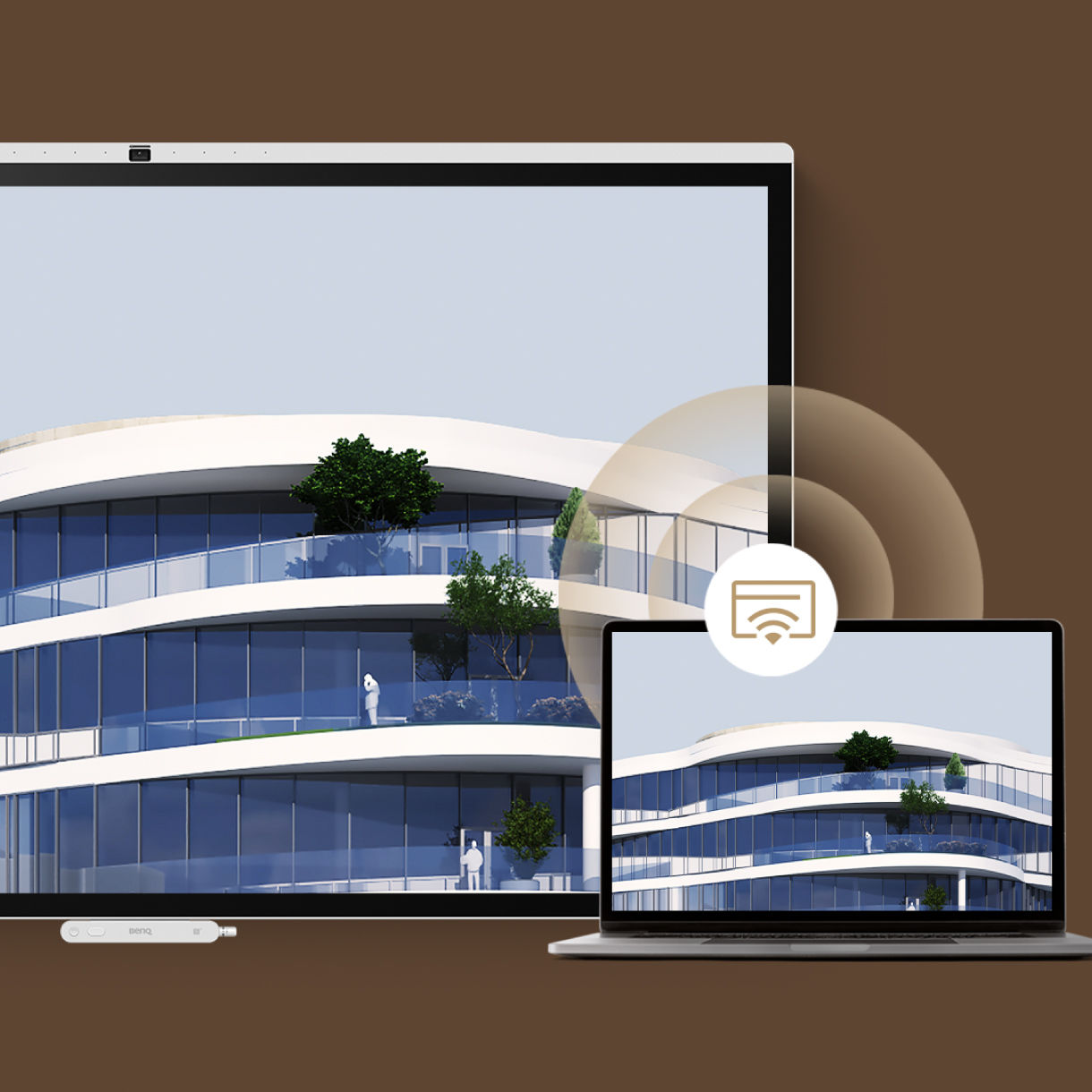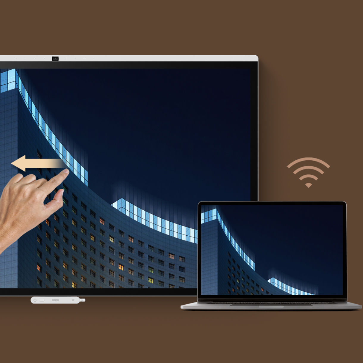 Cast your entire screen, a single app, or extend your interactive display with InstaShare 2. For app-free sharing, use Miracast, AirPlay, Google Cast, or webcasting.